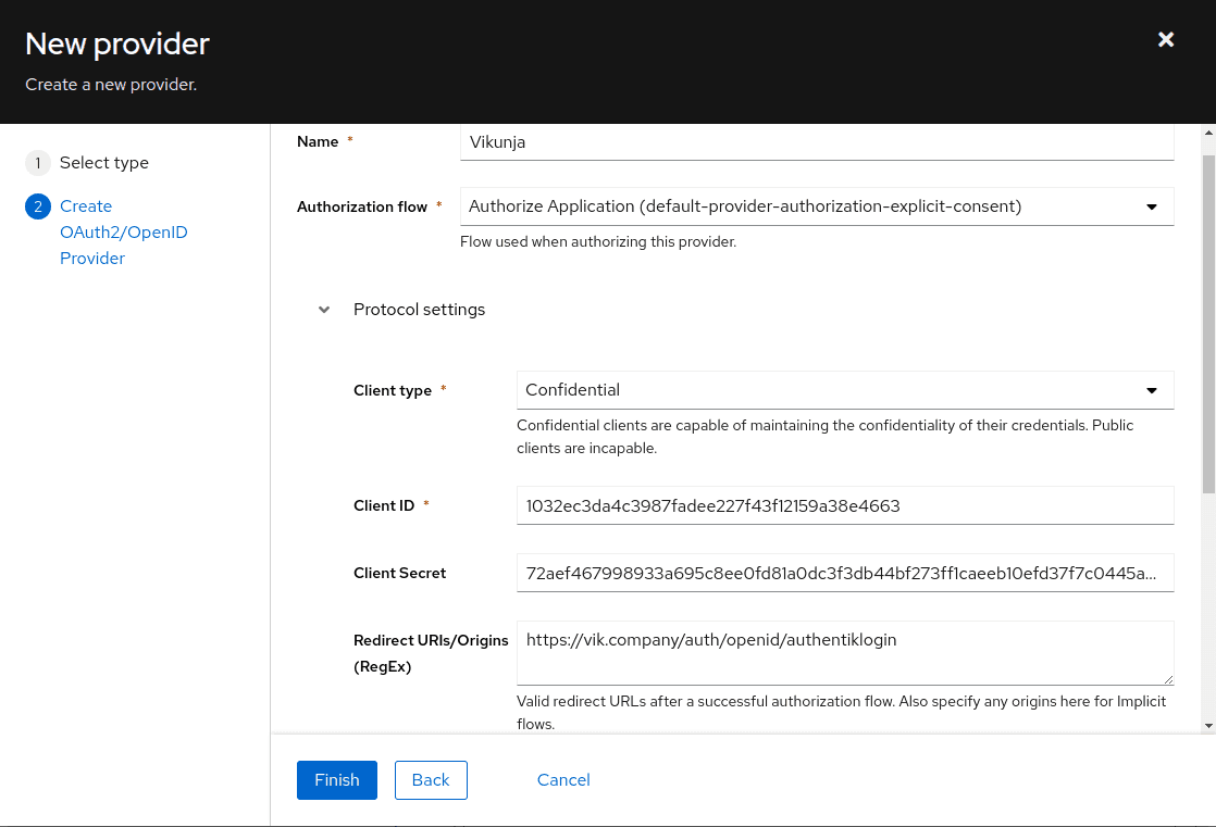 Strictredirect URI tohttps://vik.company/auth/openid/authentiklogin. - Select any available signing key.